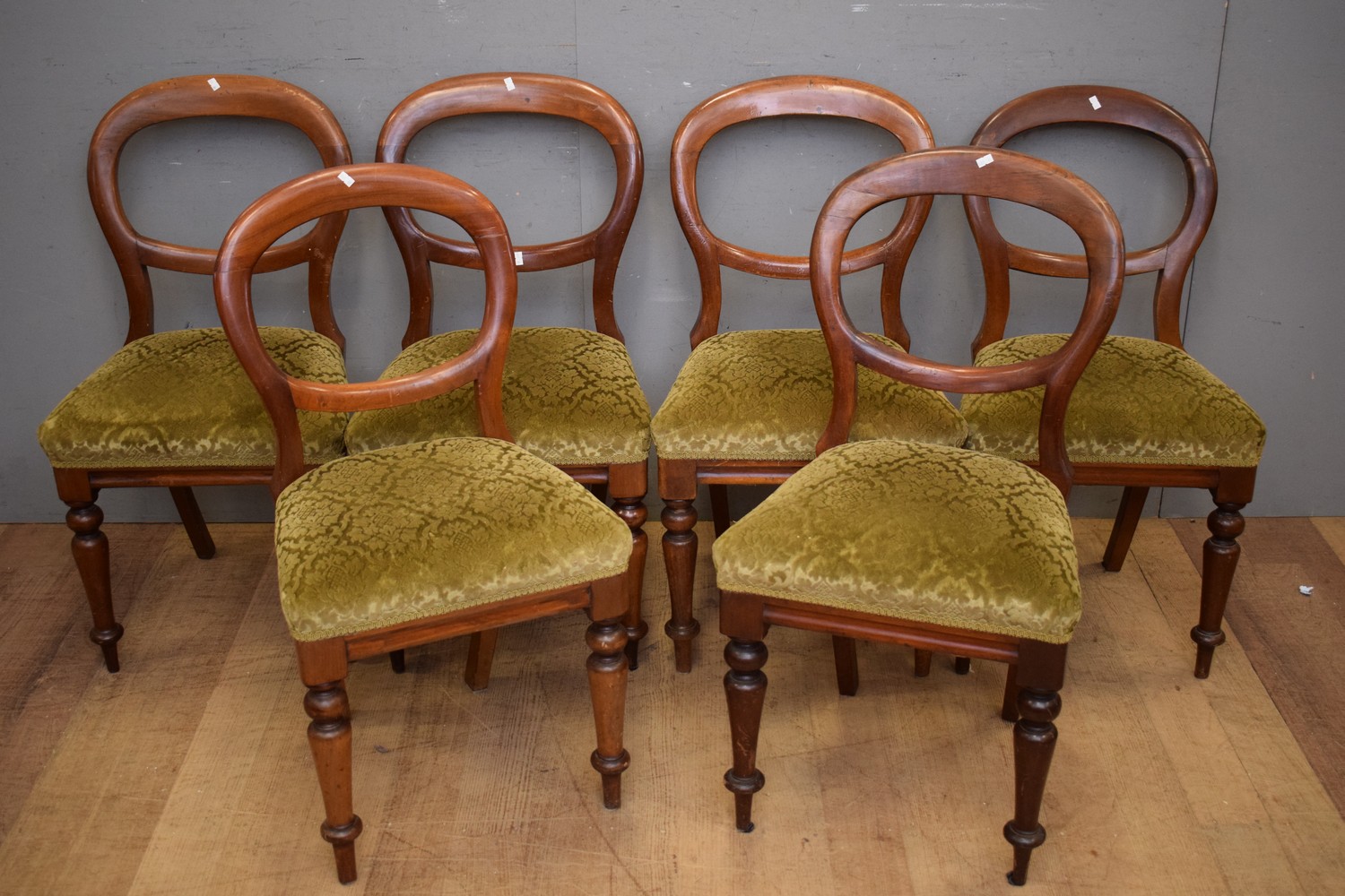 A SET OF SIX VICTORIAN CEDAR BALLOON BACK DINING CHAIRS (A/F) ( 85H X 47W X 54D CM) (LEONARD JOEL DELIVERY SIZE: LARGE)