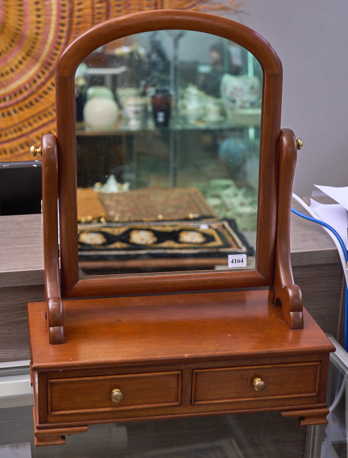 AN AUSTRALIAN CEDAR TWO DRAWER MIRROR STAND W 39 CM X 54 CM, LEONARD JOEL LOCAL DELIVERY SIZE: SMALL