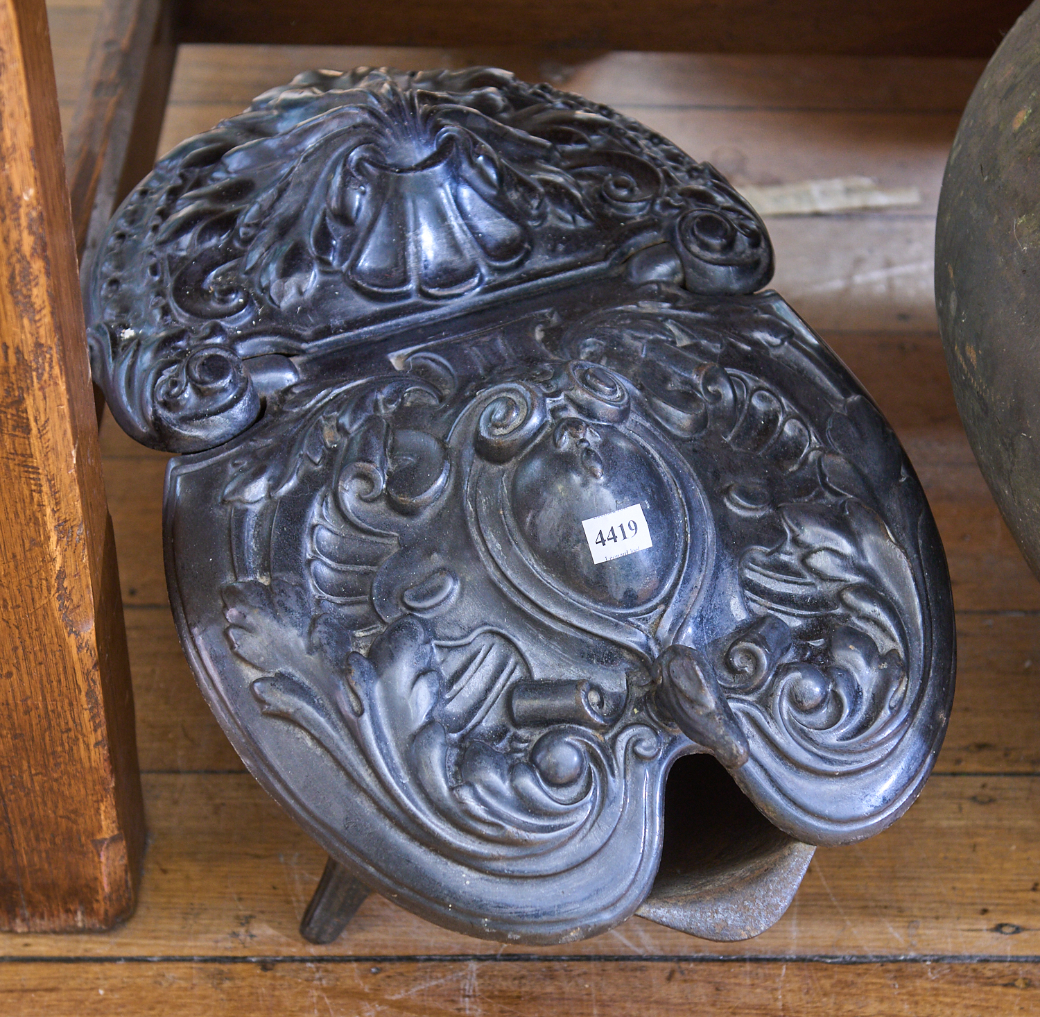 A CAST IRON LIDDED COAL SCUTTLE W 50 CM, LEONARD JOEL LOCAL DELIVERY SIZE: SMALL