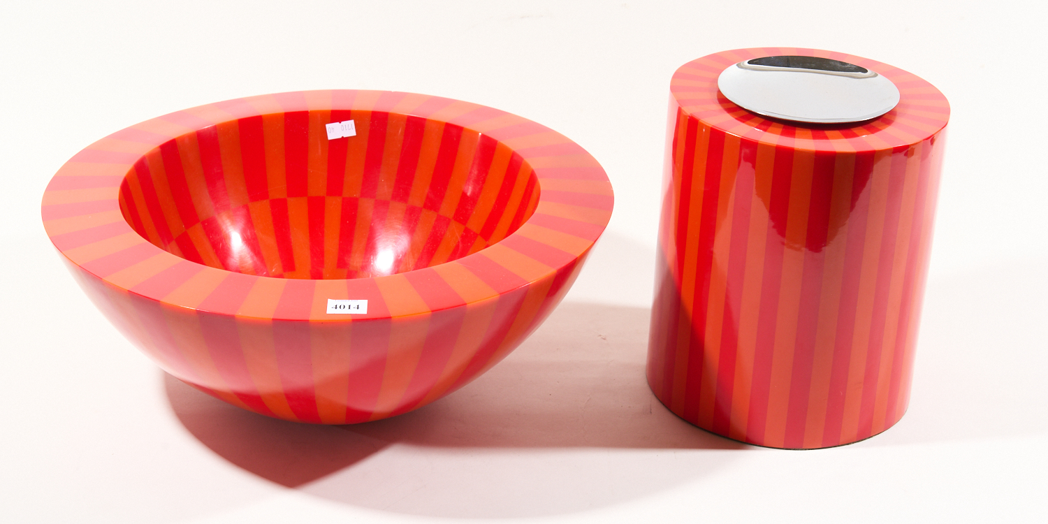 LARGE RETRO ITALIAN GUZZINI STRIPED BOWL AND CANDLESTICK DIA. 40.5 CM, LEONARD JOEL LOCAL DELIVERY SIZE: SMALL