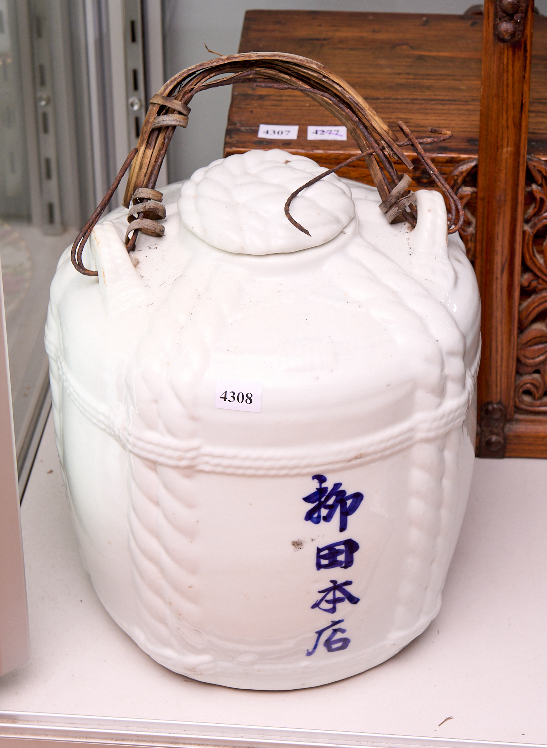 A JAPANESE PORCELAIN HAND PAINTED SAKI BOTTLE WITH HANDLE H.31CM, LEONARD JOEL LOCAL DELIVERY SIZE: SMALL