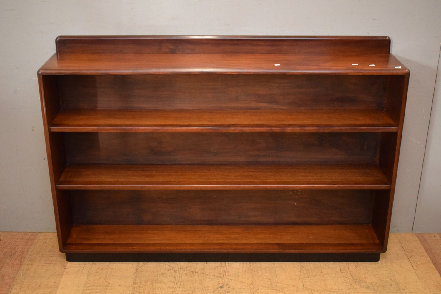 AN ART DECO BLACKWOOD OPEN BOOKSHELF (102H x 152W x 27D CM) (PLEASE NOTE THIS HEAVY ITEM MUST BE REMOVED BY CARRIERS AT THE CUSTOMER'S EXPENSE. LEONARD JOEL STAFF CANNOT ASSIST CARRYING THIS ITEM) (X-LARGE ITEM)