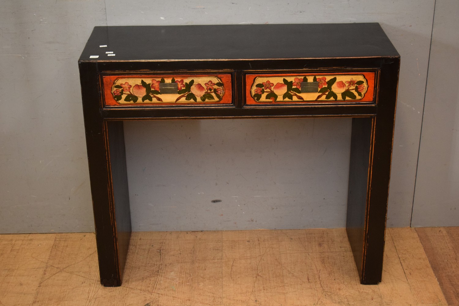 A CHINESE BLACK LACQUERED TWO DRAWER CONSOLE (84H x 96W x 34D CM) (LEONARD JOEL DELIVERY SIZE: LARGE)