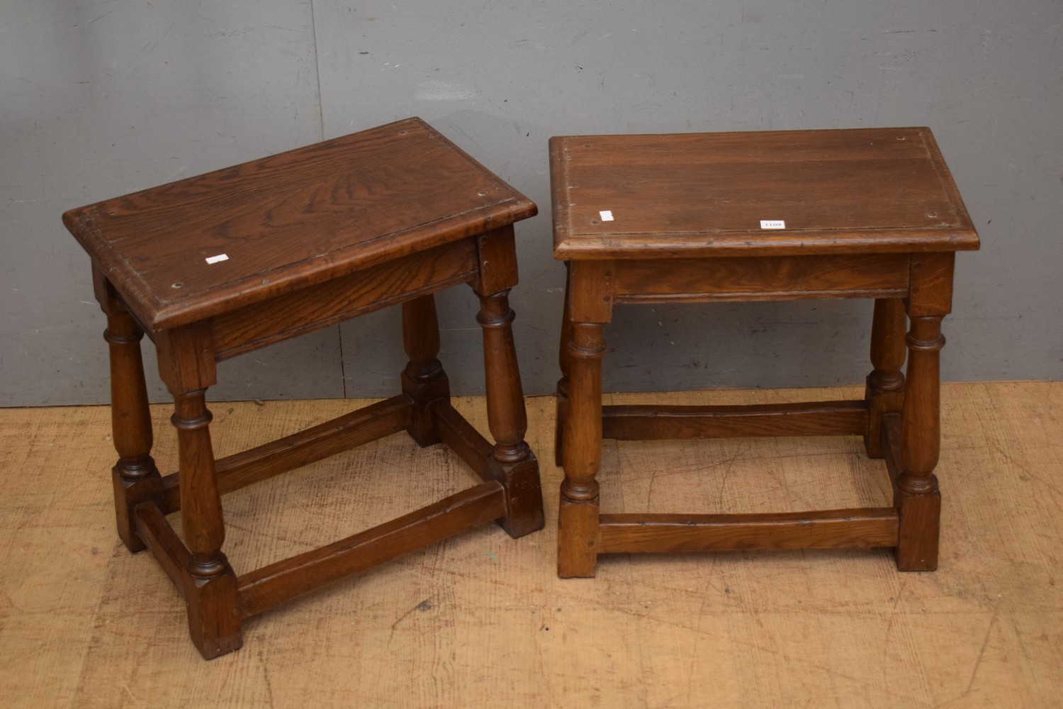 A PAIR OF OAK JOINT STOOLS (48H x 47W x 30D CM) (LEONARD JOEL DELIVERY SIZE: MEDIUM)