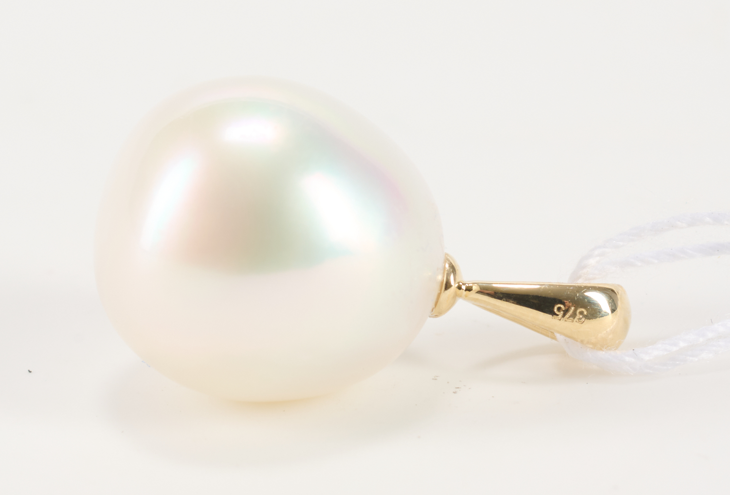 AN OVAL SOUTH SEA PEARL PENDANT TO A 9CT GOLD BAIL, PEARL APPROXIMATELY 13MM