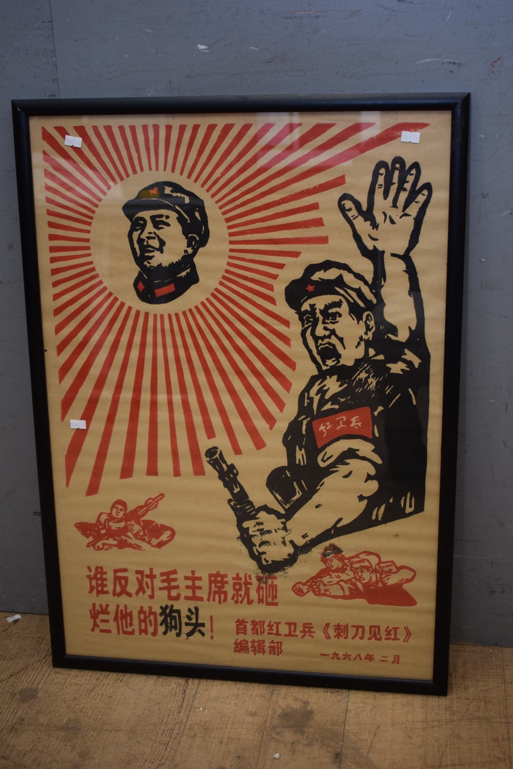 A FRAMED VINTAGE CHINESE PROPAGANDA POSTER ( 80H X 56W CM) (LEONARD JOEL DELIVERY SIZE: LARGE)