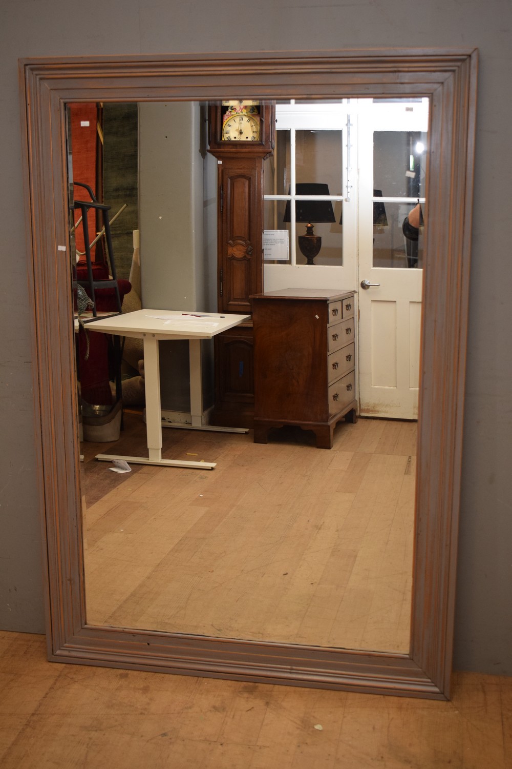 A VERY LARGE SHOP MIRROR WITH BEVELLED GLASS ( 176H X 121W CM) (PLEASE NOTE THIS HEAVY ITEM MUST BE REMOVED BY CARRIERS AT THE CUSTOMER'S EXPENSE. LEONARD JOEL STAFF CANNOT ASSIST CARRYING THIS ITEM) (X-LARGE ITEM)