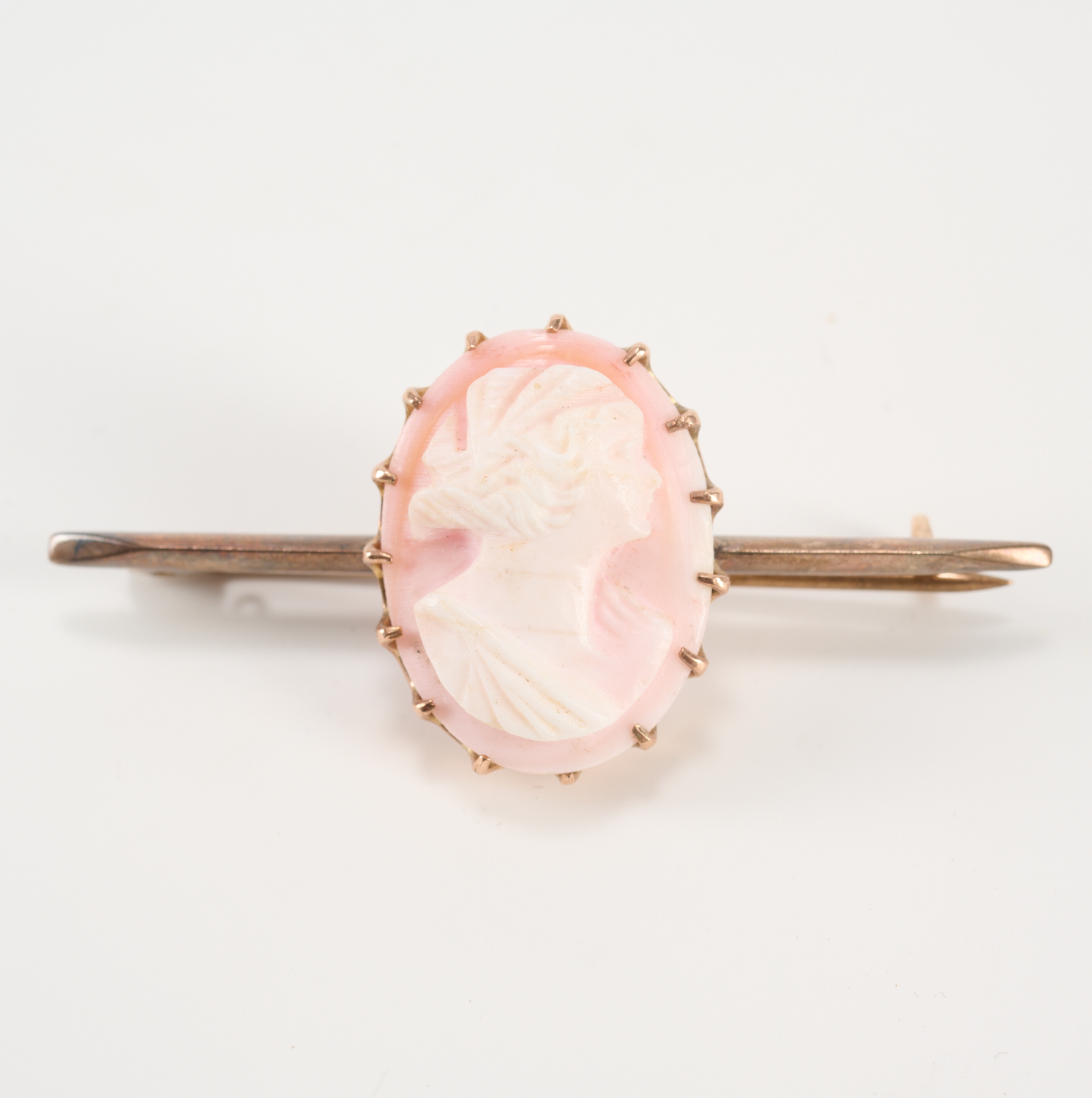 A CAMEO BAR BROOCH IN 9CT GOLD PLATING, TOTAL LENGTH APPROXIMATELY 47MM