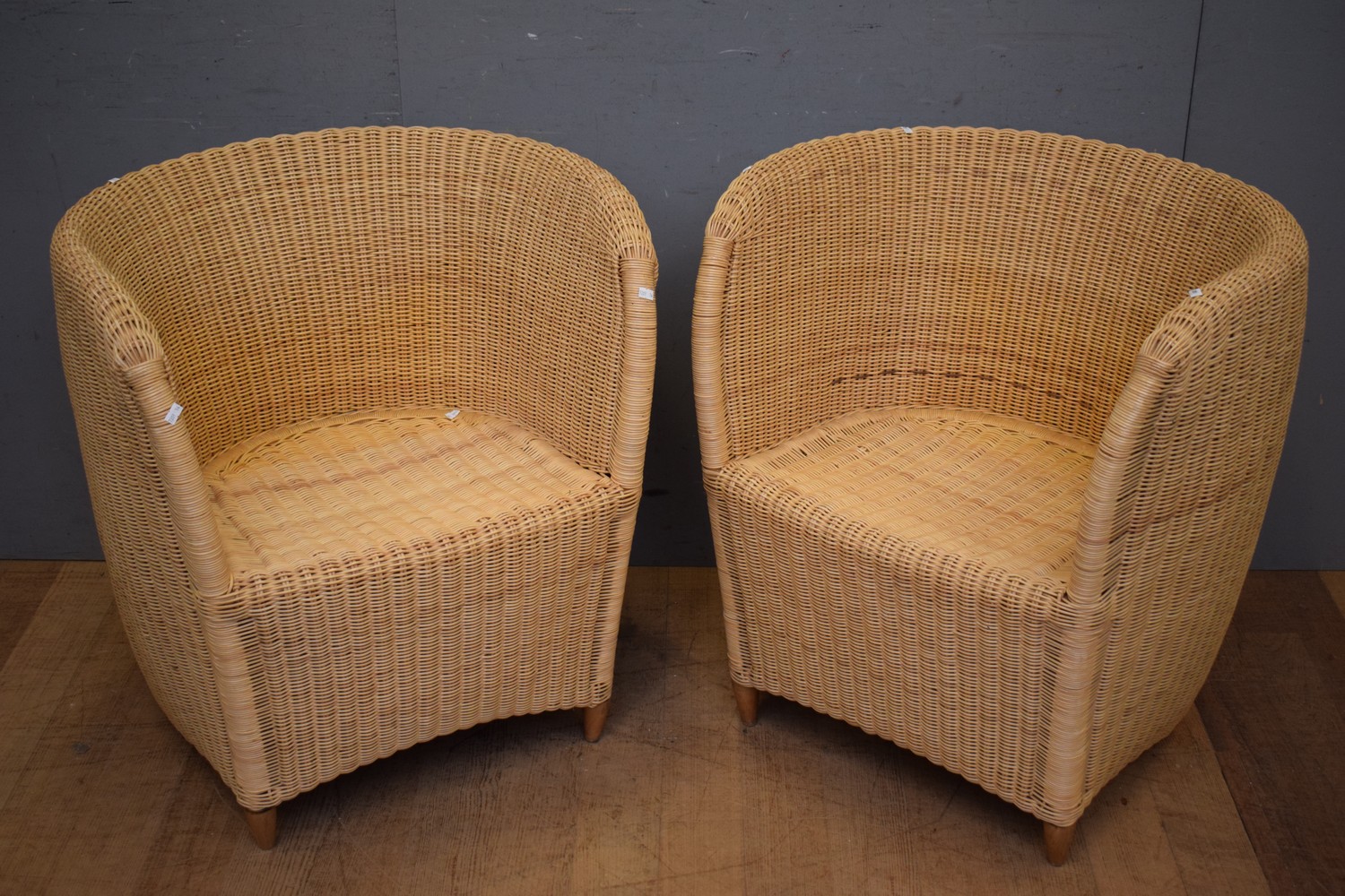 A PAIR OF CANE TUB CHAIRS ( 76H X 71W X 63D CM) (LEONARD JOEL DELIVERY SIZE: LARGE)