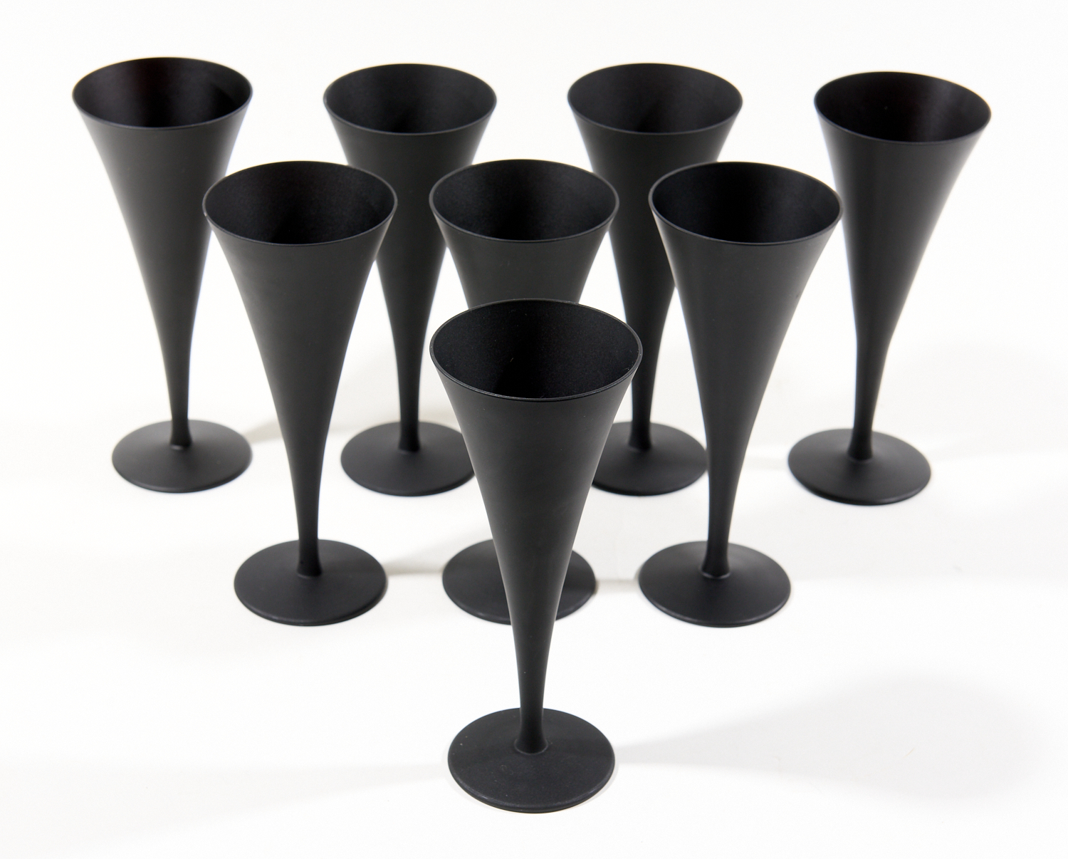 A SET OF EIGHT BLACK GOBLETS, LEONARD JOEL LOCAL DELIVERY SIZE: SMALL