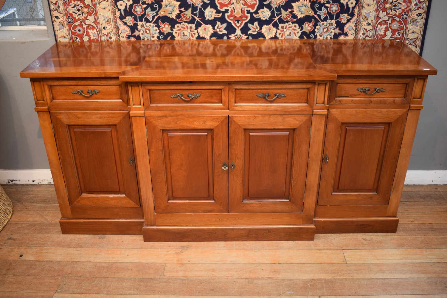 A SUBSTANTIAL OAK BREAKFRONT SIDEBOARD DESIGNED BY LESLIE JONES (96H x 190W x 58D CM) (PLEASE NOTE THIS HEAVY ITEM MUST BE REMOVED BY CARRIERS AT THE CUSTOMER'S EXPENSE. LEONARD JOEL STAFF CANNOT ASSIST CARRYING THIS ITEM) (X-LARGE ITEM)