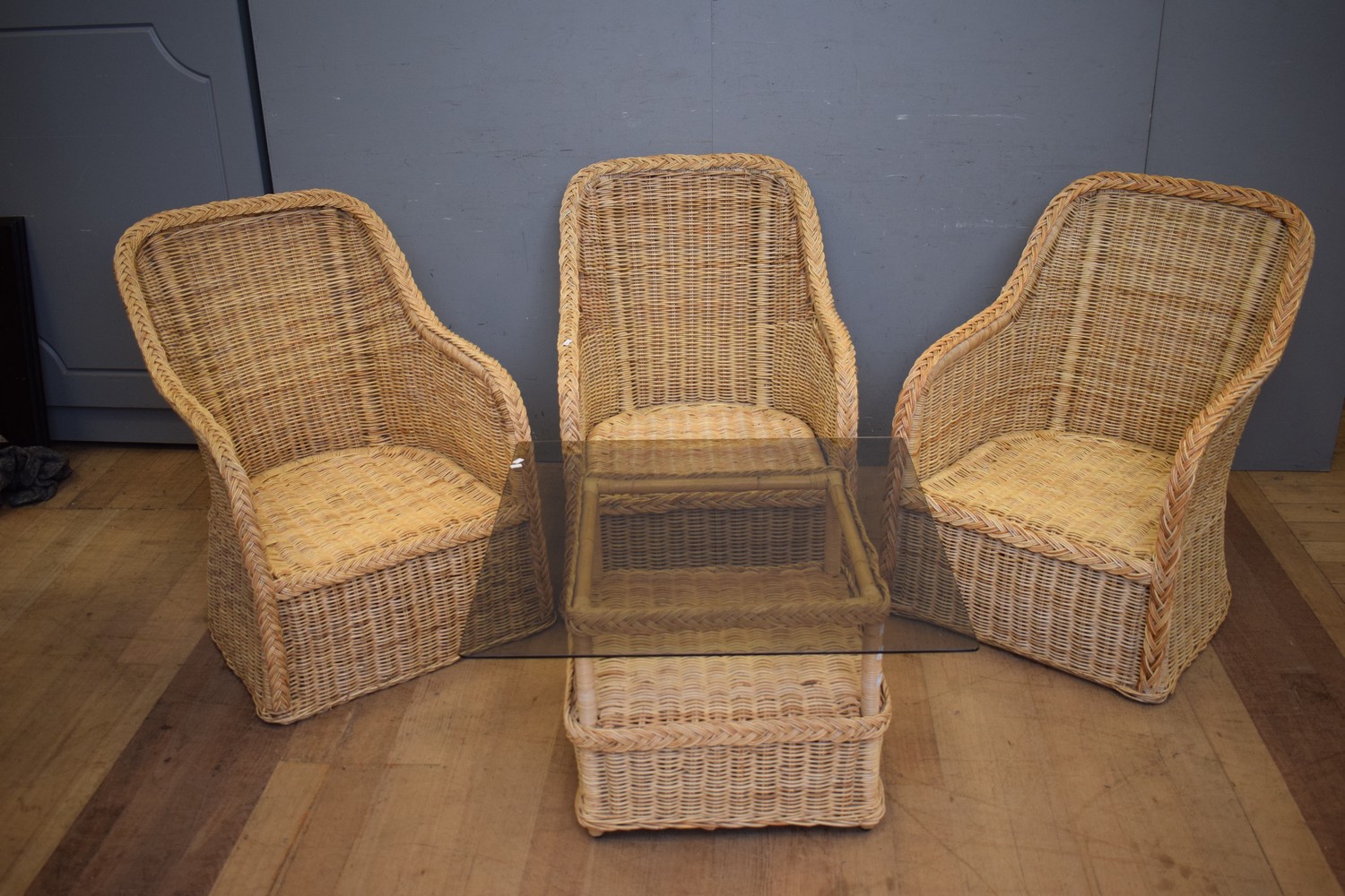 A FOUR PIECE CANE SETTING (89H x 65W x 82D CM) (PLEASE NOTE THIS HEAVY ITEM MUST BE REMOVED BY CARRIERS AT THE CUSTOMER'S EXPENSE. LEONARD JOEL STAFF CANNOT ASSIST CARRYING THIS ITEM) (X-LARGE ITEM)