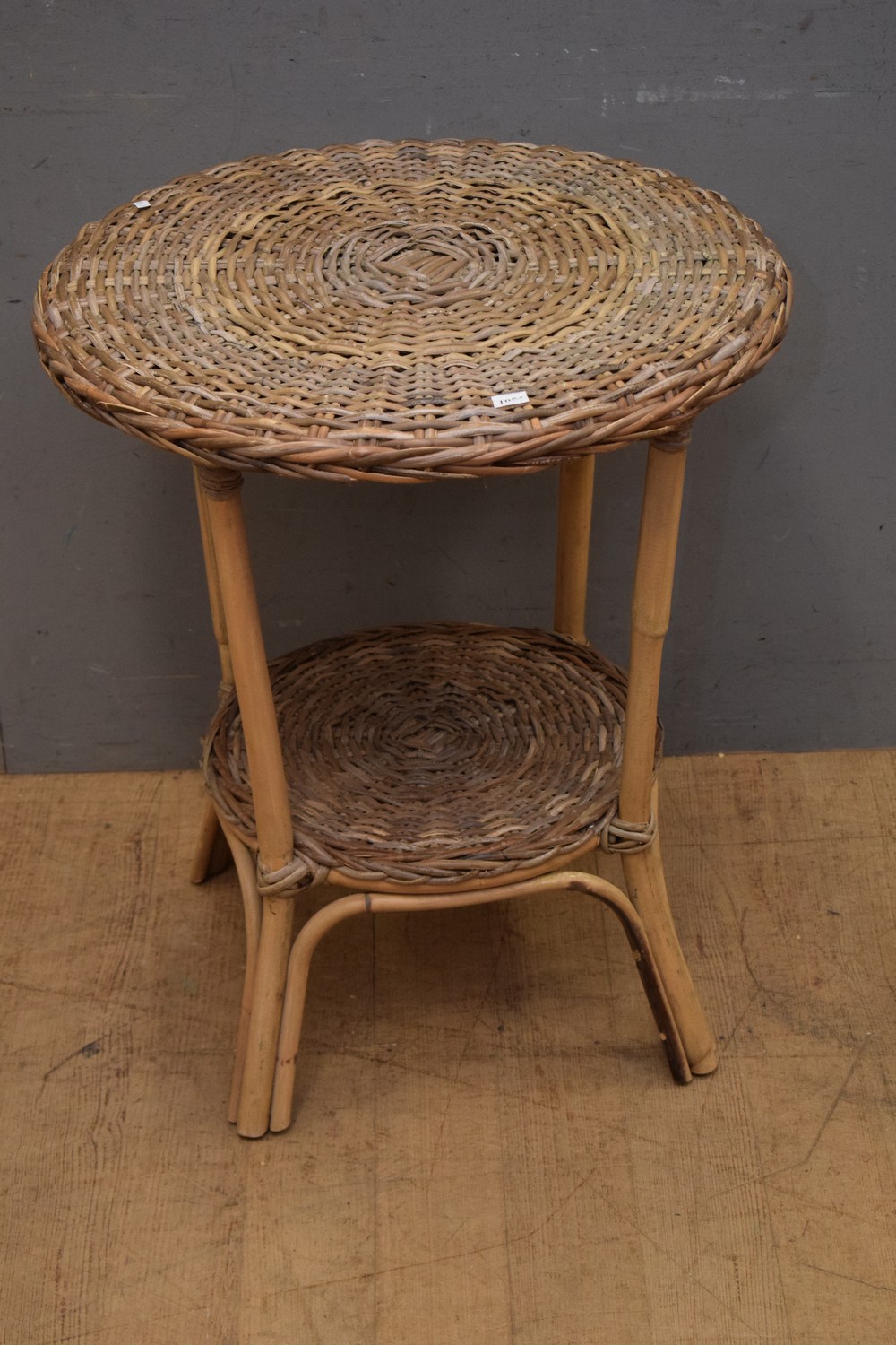 A CIRCULAR CANE TWO TIER SIDE TABLE (A/F) (69H x 60D CM) (LEONARD JOEL DELIVERY SIZE: LARGE)