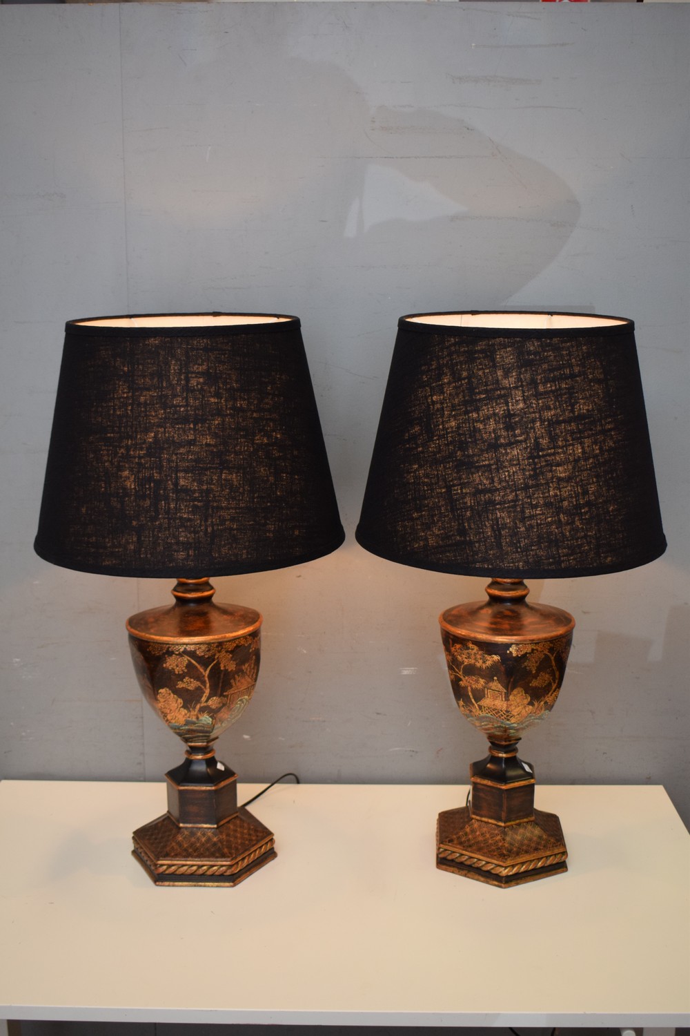 A PAIR OF CHINOISERIE STYLE TABLE LAMPS (85H x 47D CM) (LEONARD JOEL DELIVERY SIZE: LARGE)