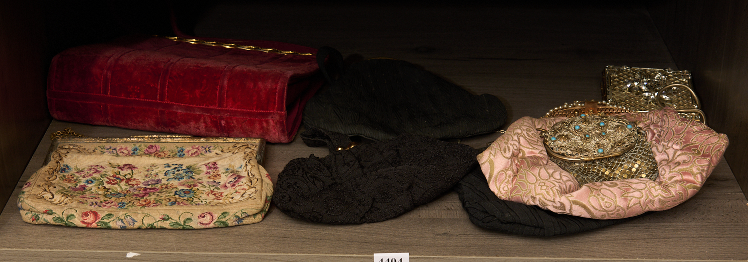 A SHELF OF VINTAGE PURSES, LEONARD JOEL LOCAL DELIVERY SIZE: SMALL