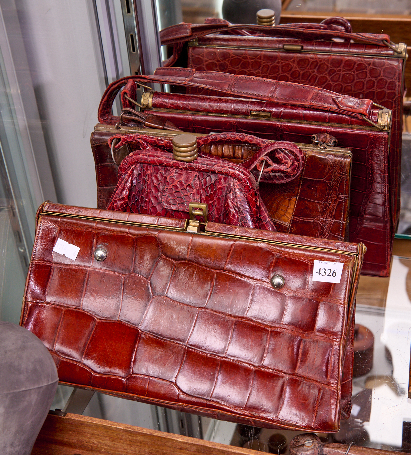 A GROUP OF CROCODILE AND ALLIGATOR PURSES, LEONARD JOEL LOCAL DELIVERY SIZE: SMALL