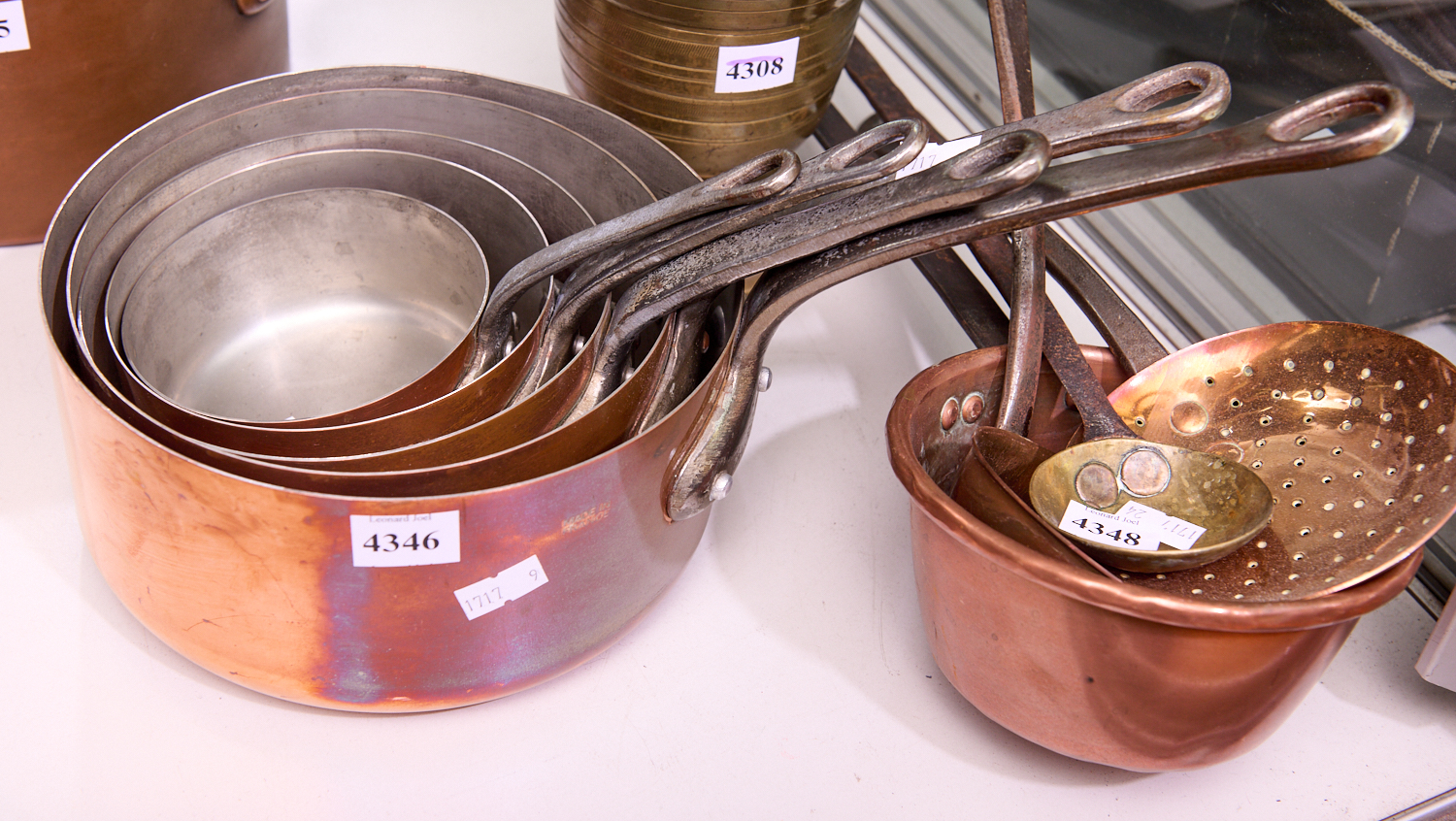 SET OF FIVE FRENCH COPPER SAUCEPANS, LEONARD JOEL LOCAL DELIVERY SIZE: SMALL