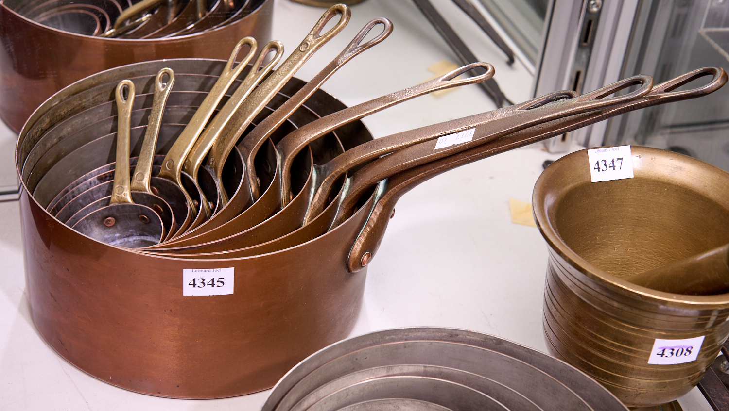 SET OF TEN FRENCH COPPER SAUCEPANS, LEONARD JOEL LOCAL DELIVERY SIZE: SMALL