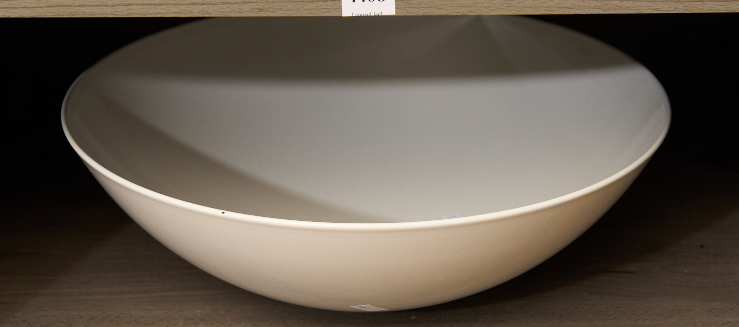 WHITE ENAMEL BASIN BY ALAPE DIA 36CM, LEONARD JOEL LOCAL DELIVERY SIZE: SMALL