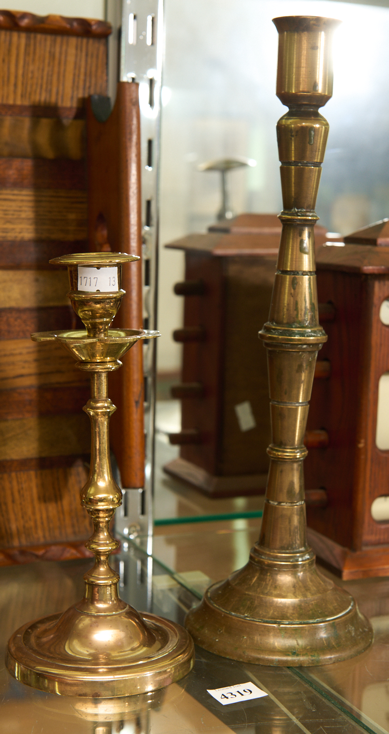TWO BRASS CANDLE STICKS H.33.5 CM, LEONARD JOEL LOCAL DELIVERY SIZE: SMALL