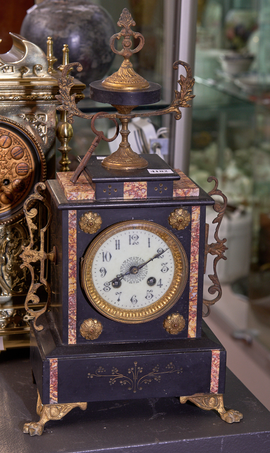 ANTIQUE FRENCH MANTLE CLOCK WITH KEY (NO PENDULUM), LEONARD JOEL LOCAL DELIVERY SIZE: SMALL