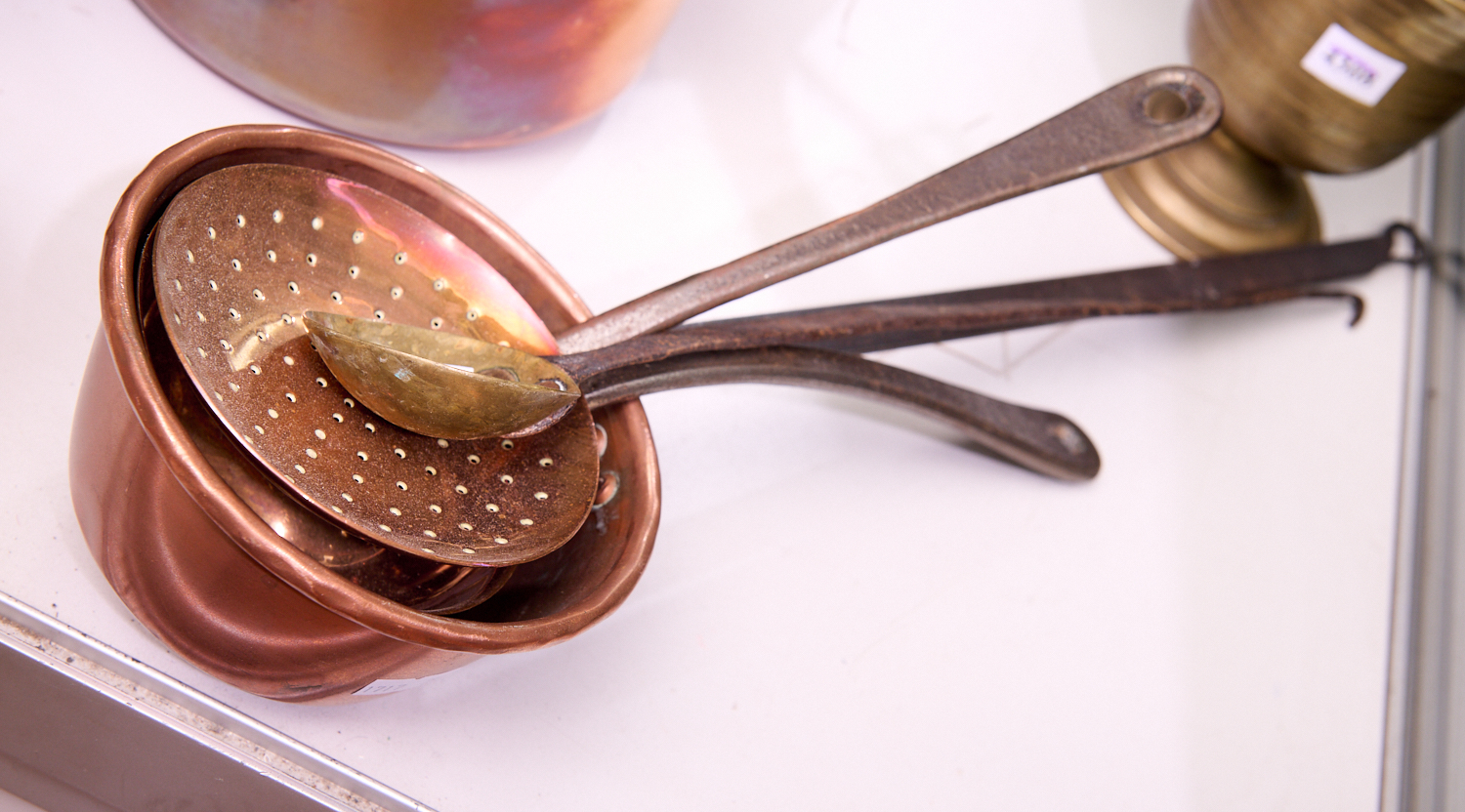 A GROUP OF COPPER KITCHEN UTENSILS, LEONARD JOEL LOCAL DELIVERY SIZE: SMALL