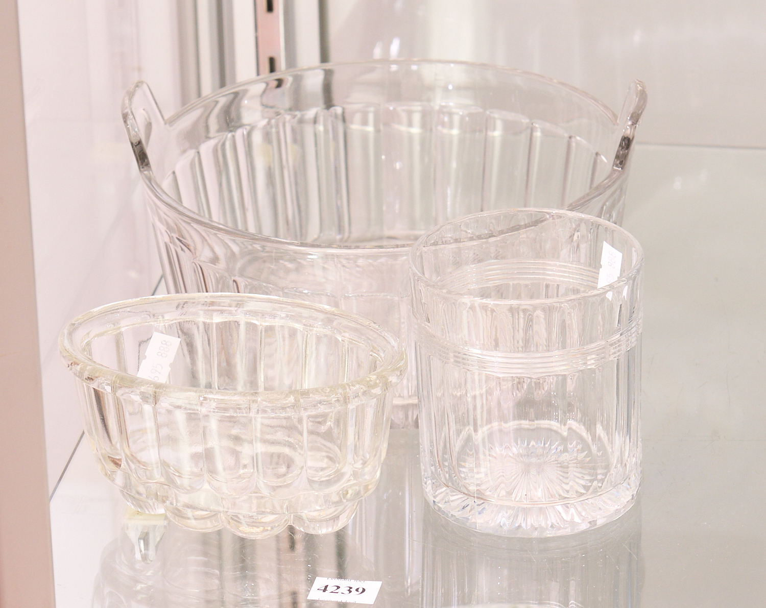 A GROUP OF THREE GLASS ITEMS INC. GLASS BOWL DIA 20CM, LEONARD JOEL LOCAL DELIVERY SIZE: SMALL. The Rodney Permezel Collection