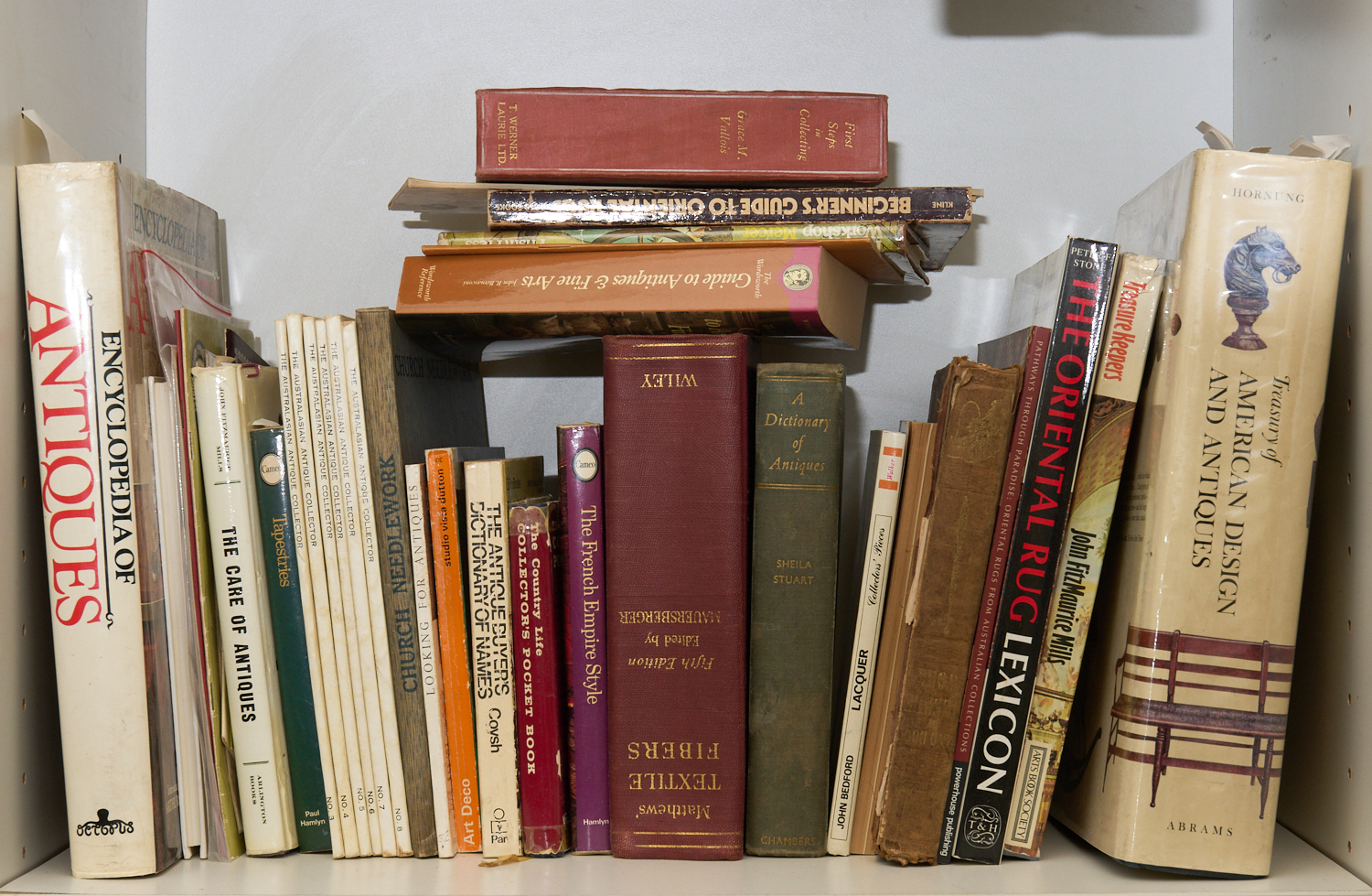 SHELF OF BOOKS PERTAINING TO ANTIQUES AND TEXTILES, LEONARD JOEL LOCAL DELIVERY SIZE: SMALL. The Rodney Permezel Collection