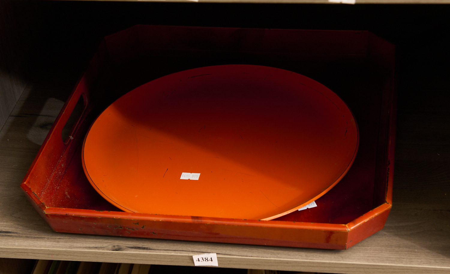 WOODEN TRAY TOGTHER WITH A PLATE W, 40.5CM, LEONARD JOEL LOCAL DELIVERY SIZE: SMALL. The Rodney Permezel Collection