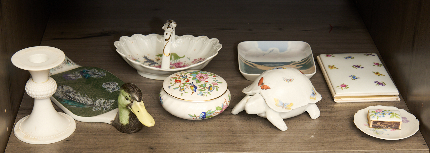 A SHELF OF CERAMICS INCLUDING LIMOGES, LEONARD JOEL LOCAL DELIVERY SIZE: SMALL