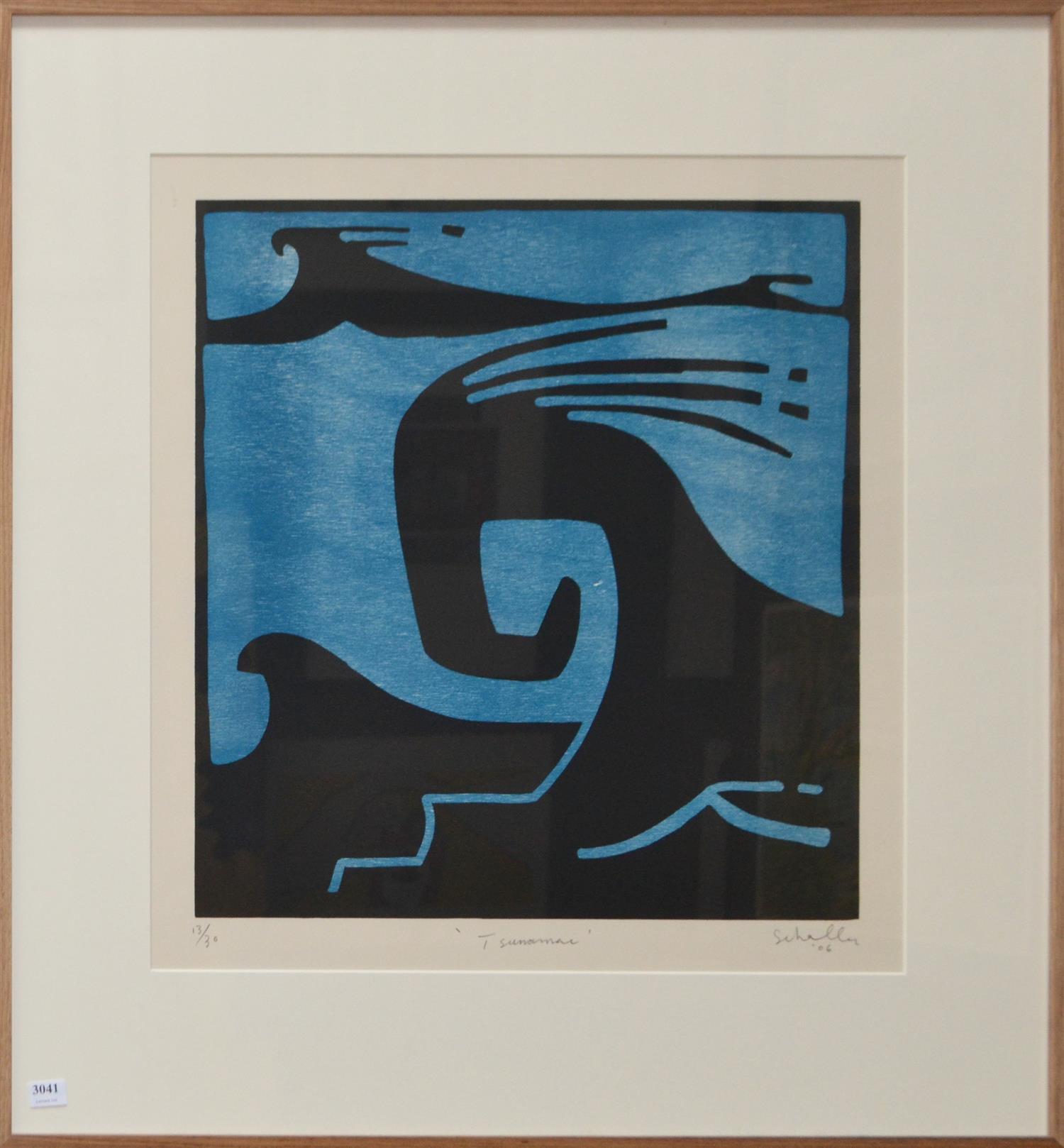 MARK SCHALLER, TSUNAMI 2006, WOODBLOCK 13/30, 50 X 45CM