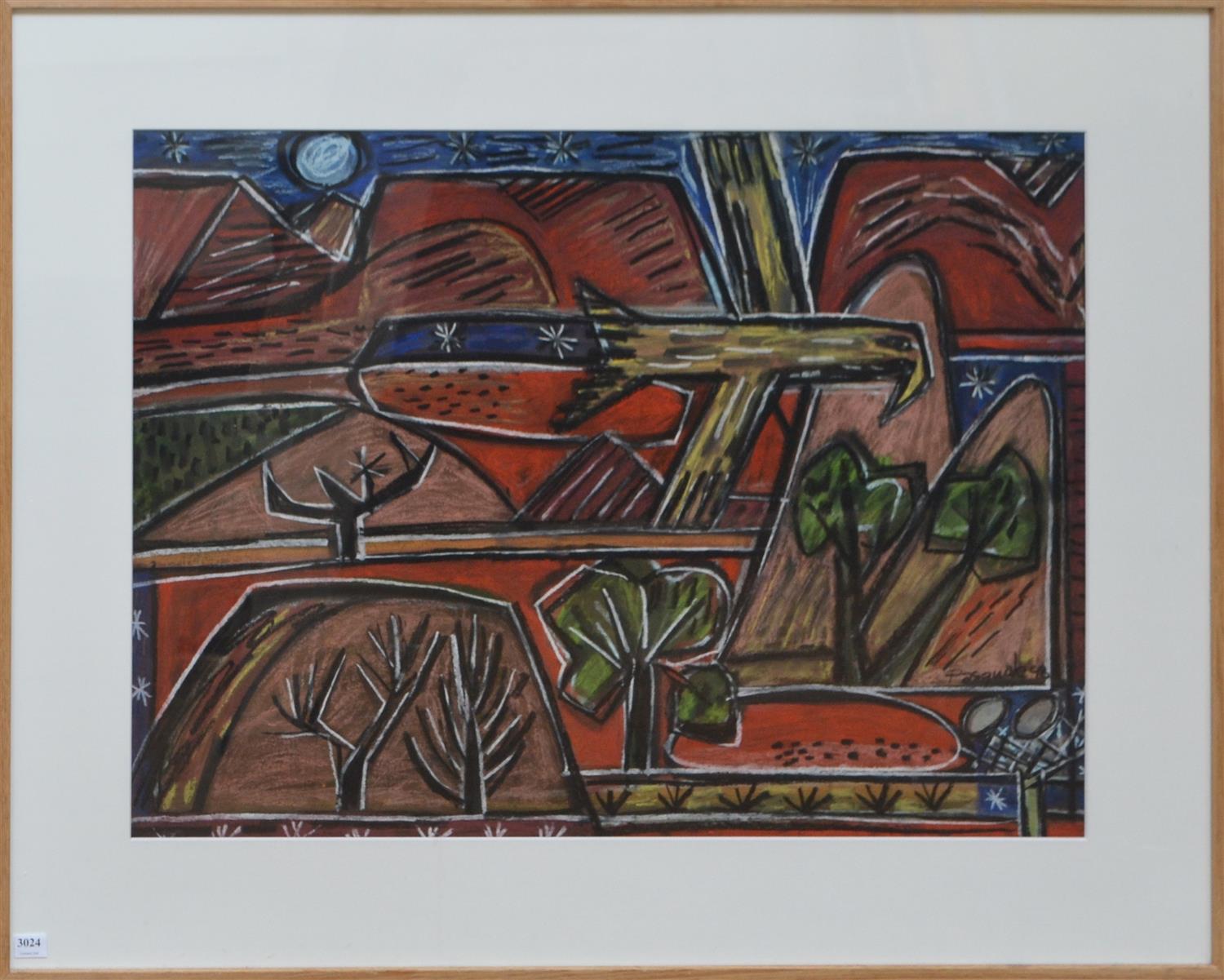 PASQUALE GIARDINO, ABSTRACT LANDSCAPE W BIRD 1998, PASTEL ON PAPER, 55 X 74.5CM