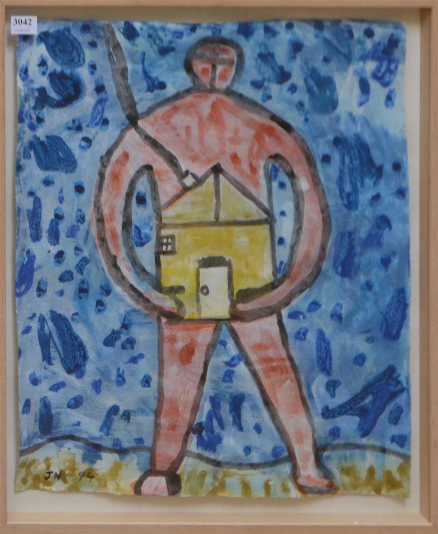 JILL NOBLE, FIGURE WITH HOUSE 1994, WATERCOLOUR ON PAPER, 46 X 37.5CM