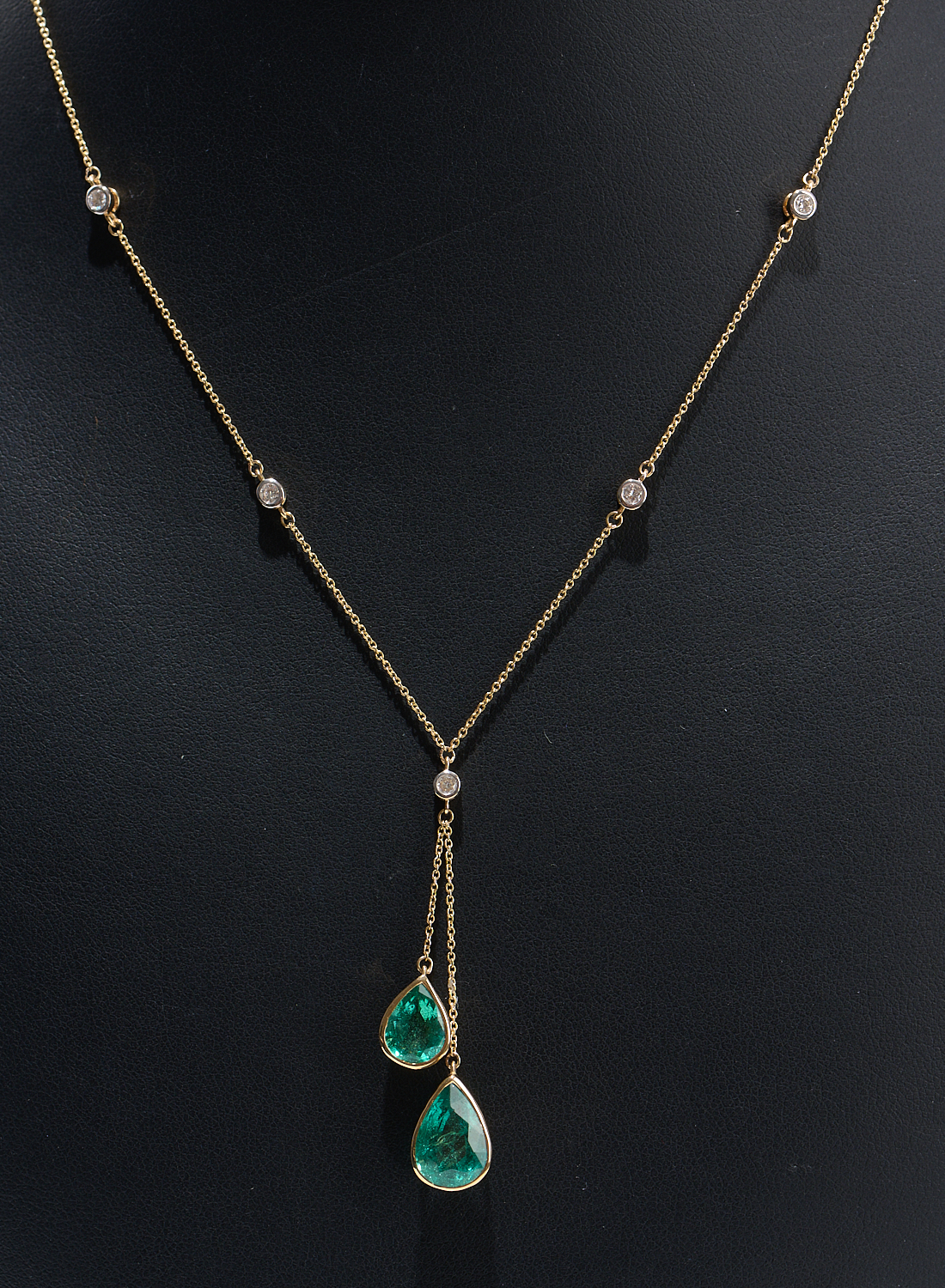 TWIN TEARDROP EMERALD AND DIAMOND PENDANT NECKLACE