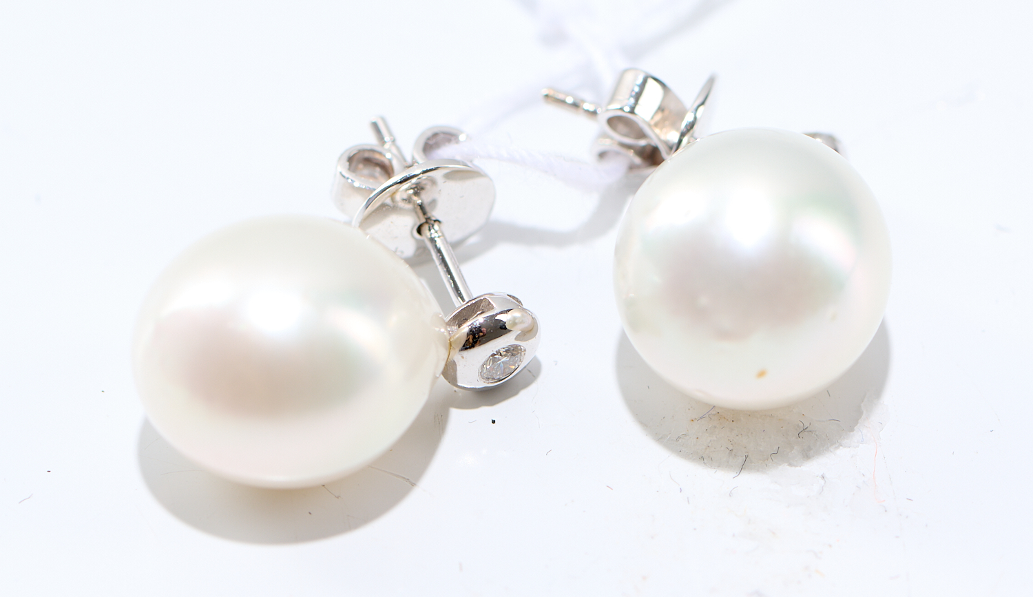 A PAIR OF SOUTH SEA PEARL AND DIAMOND EARRINGS IN 18CT WHITE GOLD