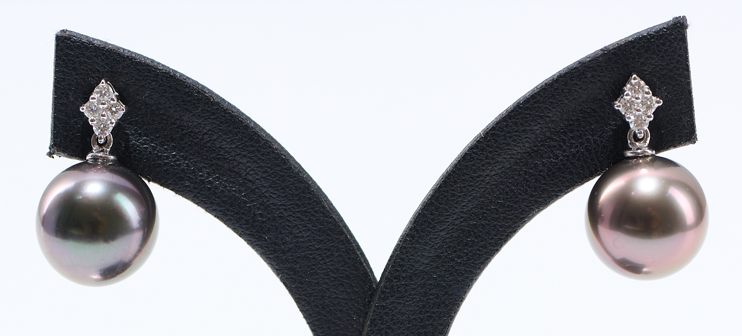 A PAIR OF SOUTH SEA PEARL, SAPPHIRE AND DIAMOND EARRINGS