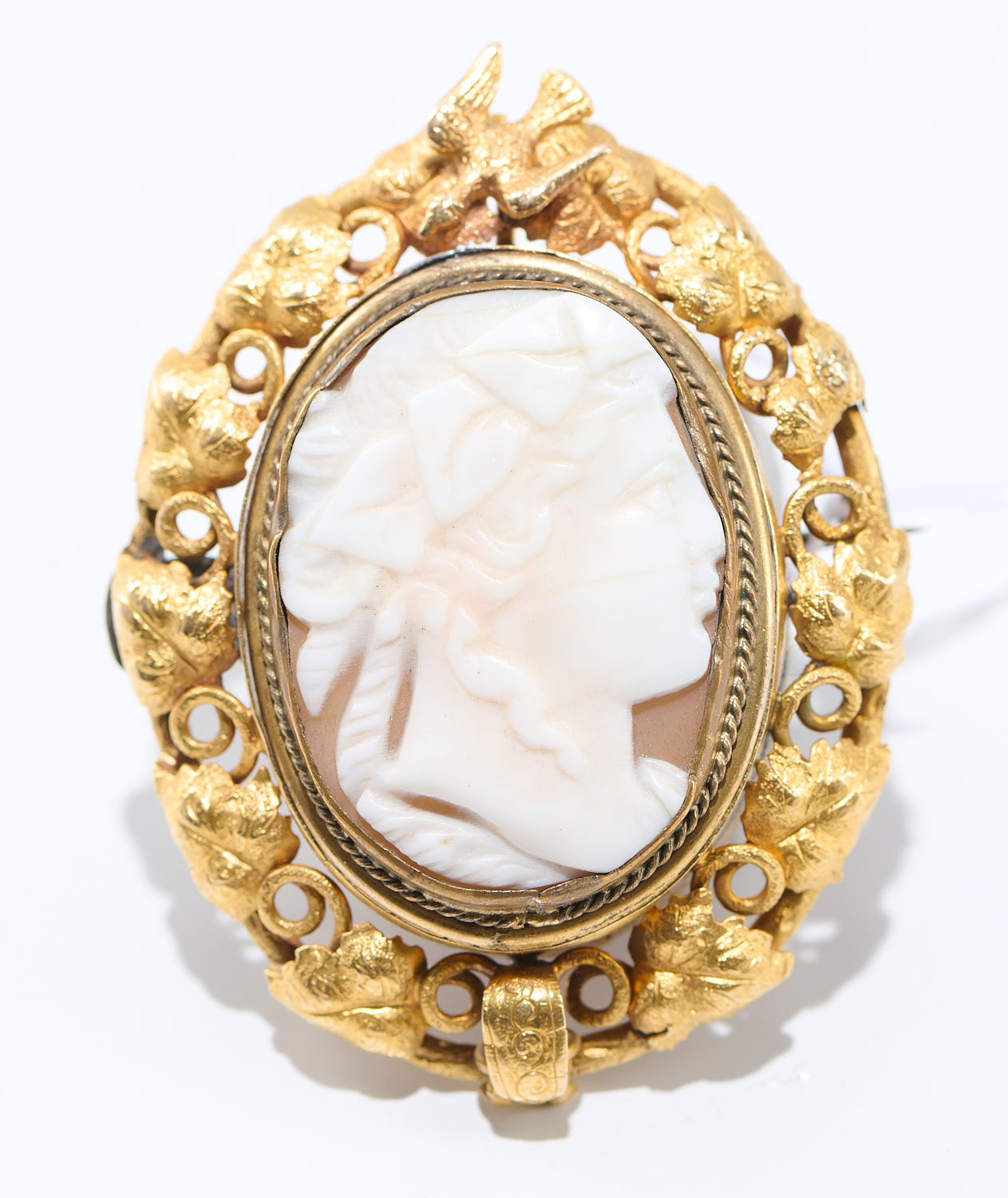 A CAMEO BROOCH IN 15CT GOLD, AUSTRALIAN HALLMARKED, CIRCA 1870, DIMENSIONS APPROXIMATELY 45 X 35MM
