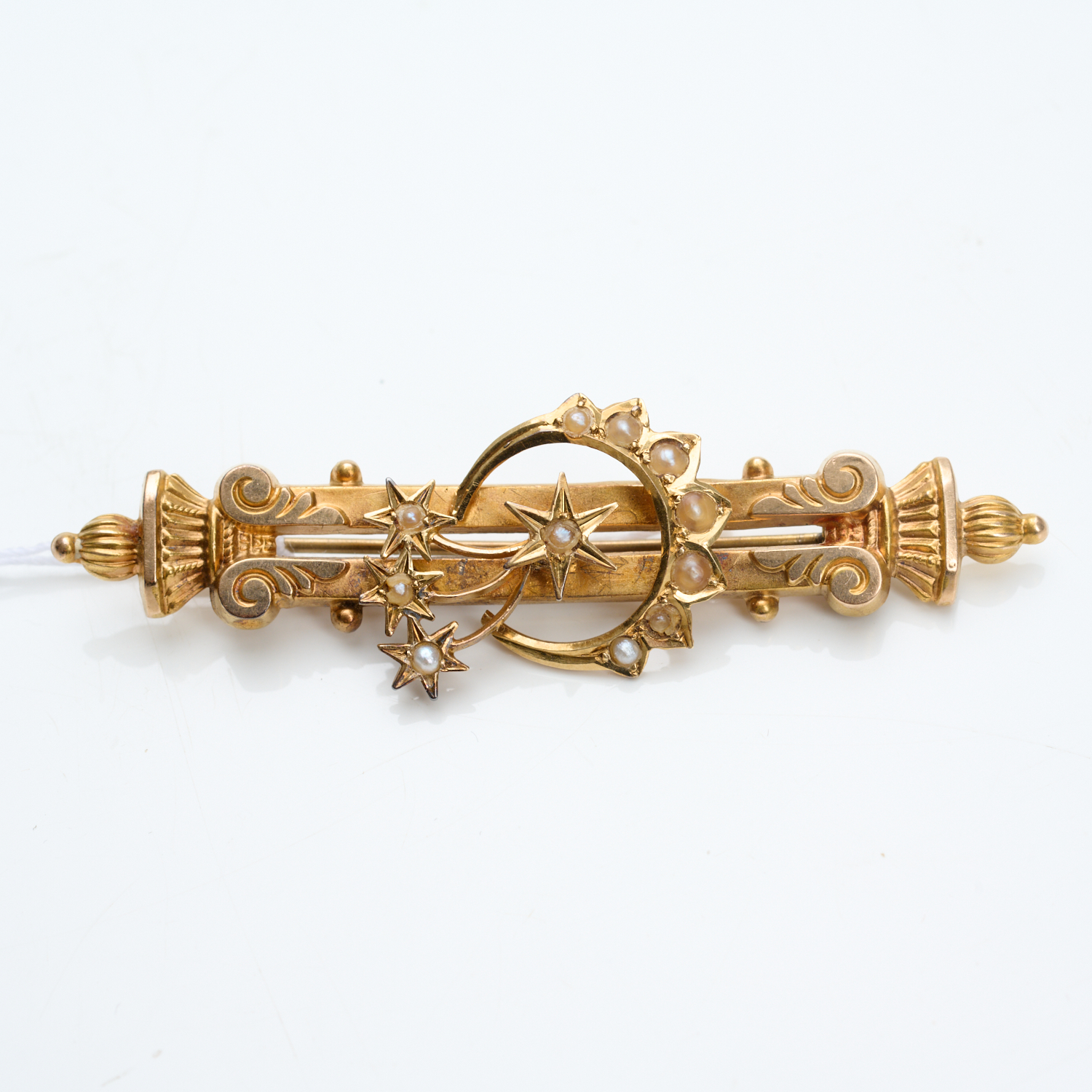 A SEED PEARL SET HALLEY'S COMET BROOCH BY WILLIS, IN 15CT GOLD, LENGTH APPROXIMATELY 59MM, 4.2GMS