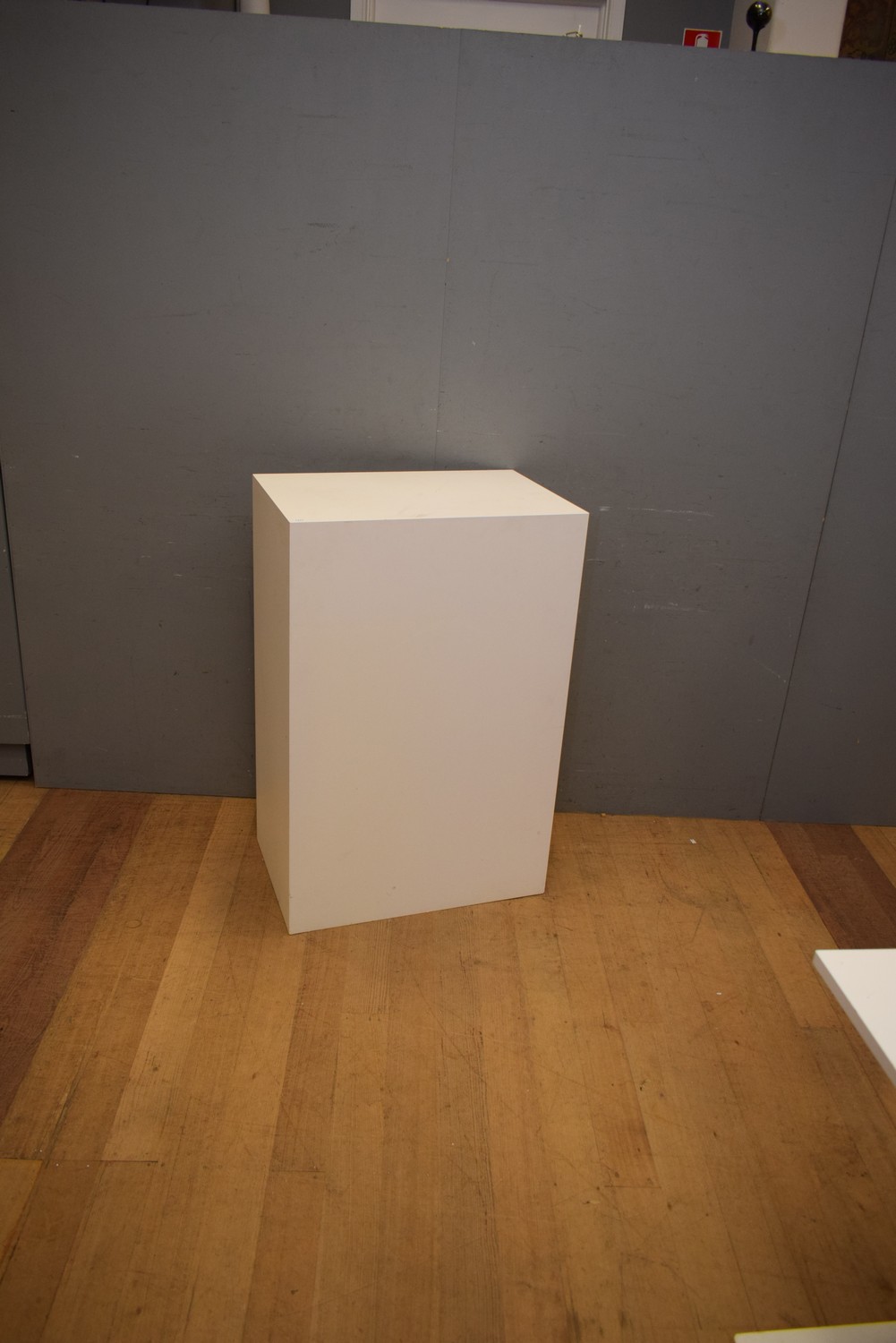 A WHITE PLINTH (108H x 71W x 46D CM) (PLEASE NOTE THIS HEAVY ITEM MUST BE REMOVED BY CARRIERS AT THE CUSTOMER'S EXPENSE. LEONARD JOEL STAFF CANNOT ASSIST CARRYING THIS ITEM) (X-LARGE ITEM)