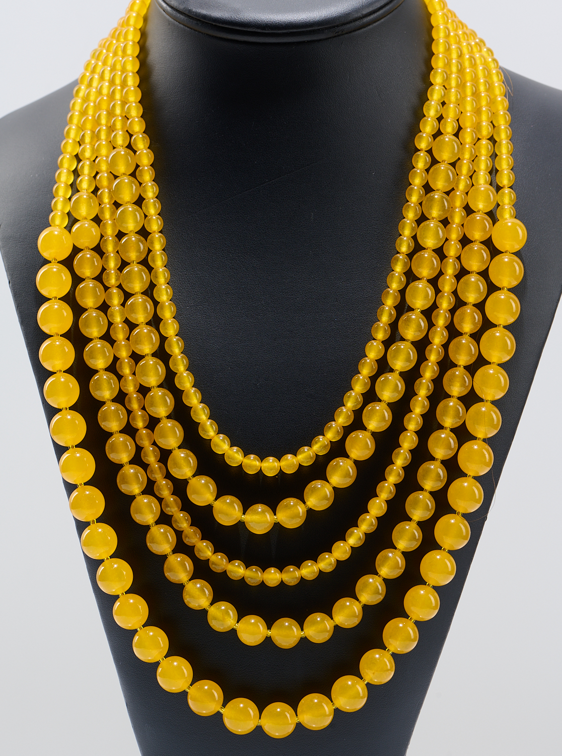A VIBRANT MULTI STRAND NEPHRITE BEADED NECKLACE
