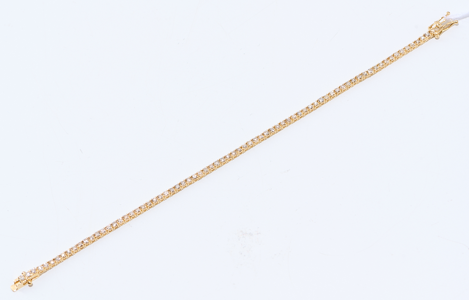 A DIAMOND SET TENNIS BRACELET IN 18CT GOLD, DIAMONDS TOTALLING 2.90CTS, LENGTH APPROXIMATELY 180MM, 7.7GMS