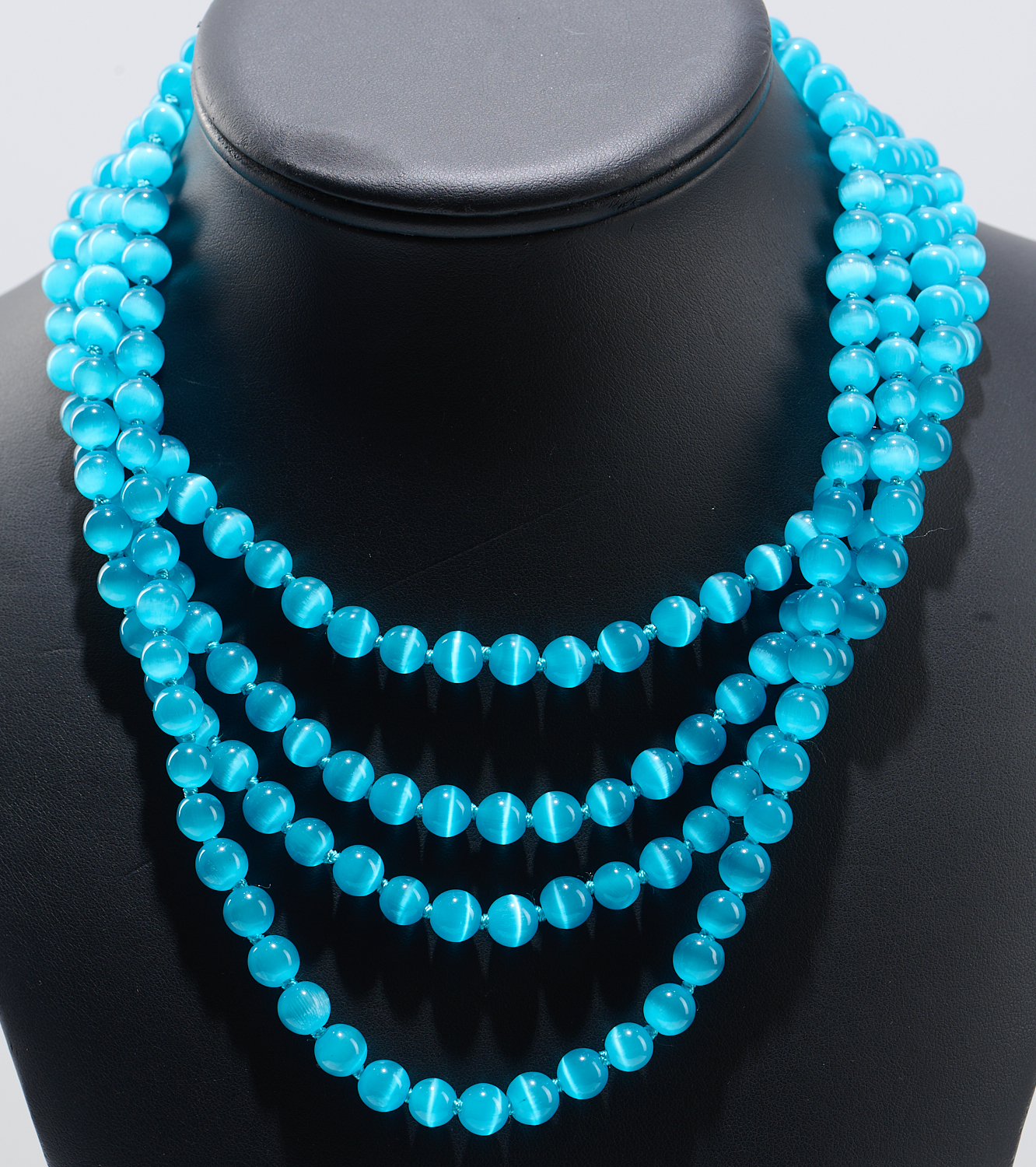 A MULTI STRAND GLASS BEAD CAT'S EYE NECKLACE