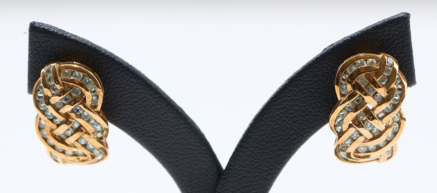 A PAIR OF 9CT GOLD AND GEM-SET EARRINGS, TO POST AND BUTTERFLY FITTINGS, 5.11GMS