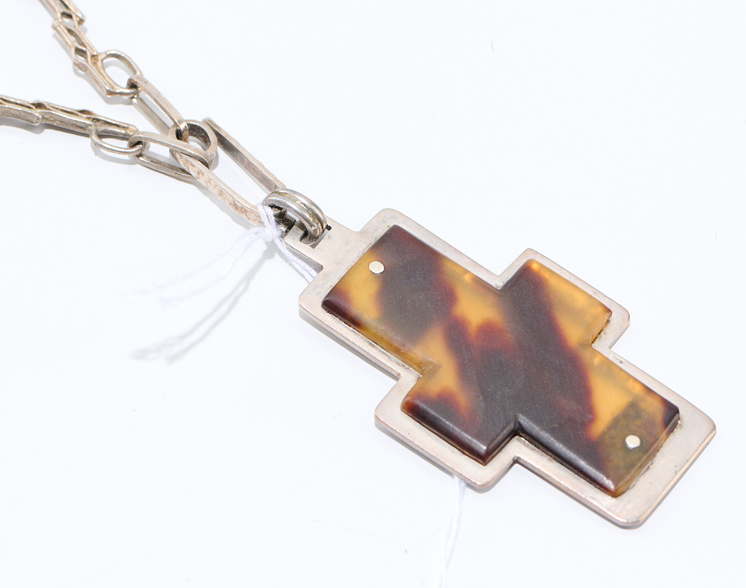 A SILVER AND TORTOISE SHELL CROSS PENDANT