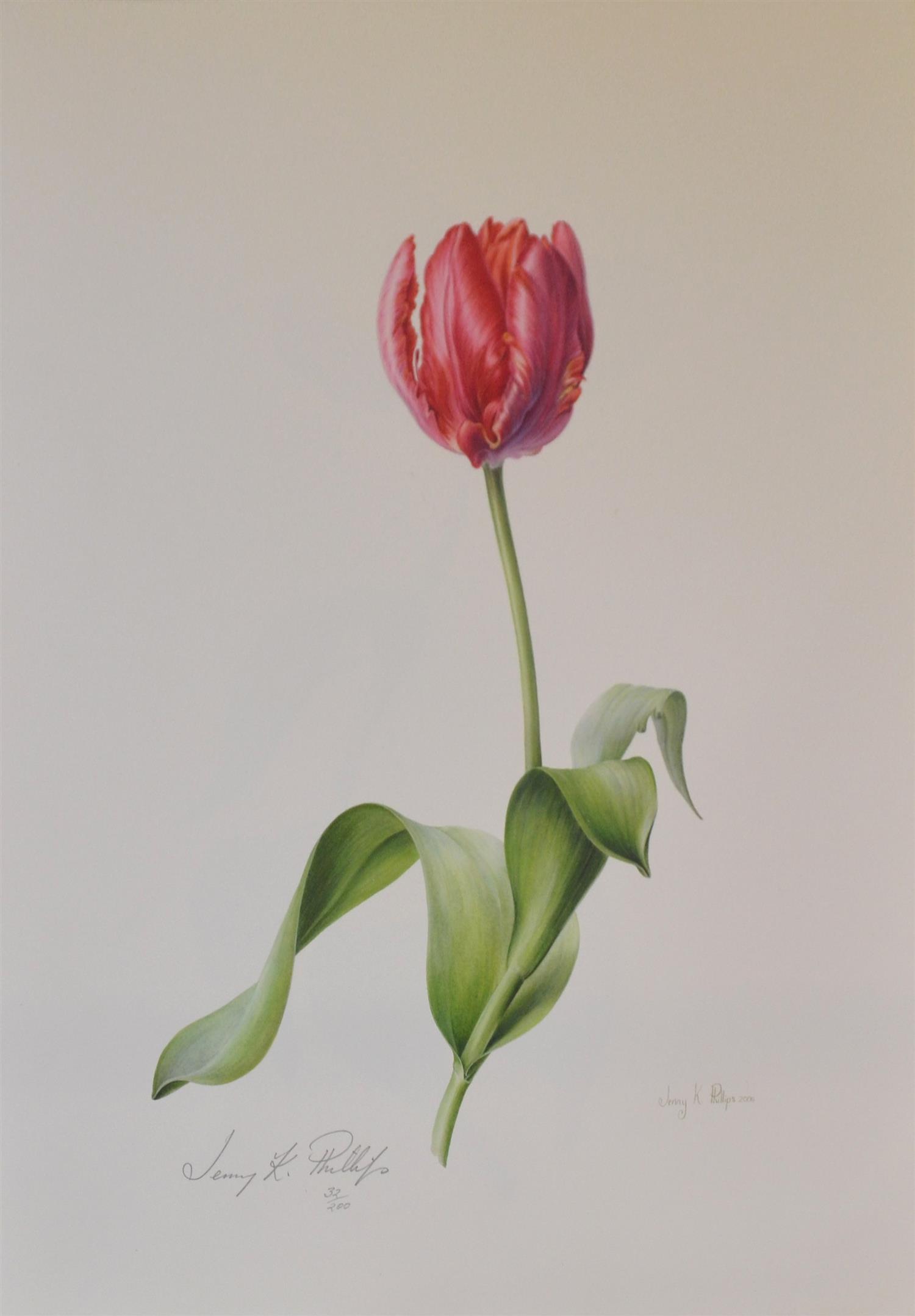 JENNY PHILLIPS, SET OF THREE HAND SIGNED TULIP PRINTS, 42 X 30CM (SHEET), ACCOMPANIED BY CERTIFICATE OF AUTHENCITY