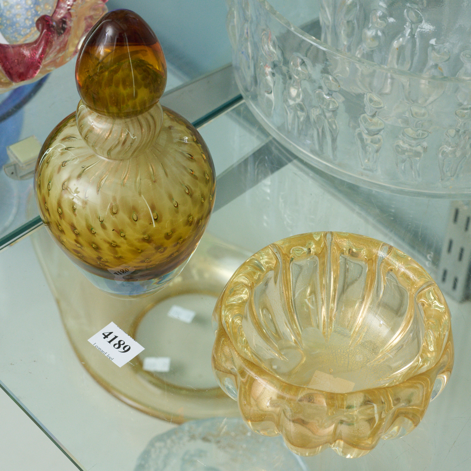 A MURANO PERFUME BOTTLE TOGTHER WITH A BOWL, LEONARD JOEL LOCAL DELIVERY SIZE: SMALL