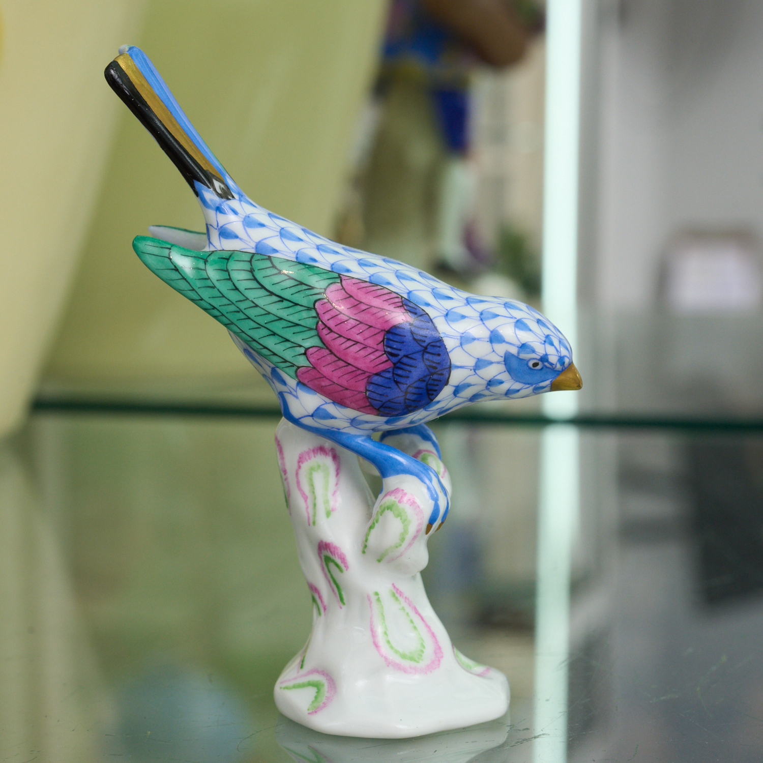A HEREND PORCELAIN BIRD ON A TREE FIGURINE, LEONARD JOEL LOCAL DELIVERY SIZE: SMALL