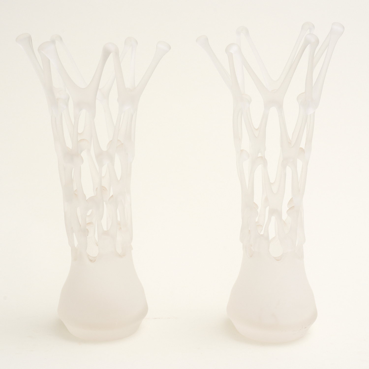 A PAIR OF MURANO FROSTED LATTICE GLASS VASES H.34CM, LEONARD JOEL LOCAL DELIVERY SIZE: SMALL