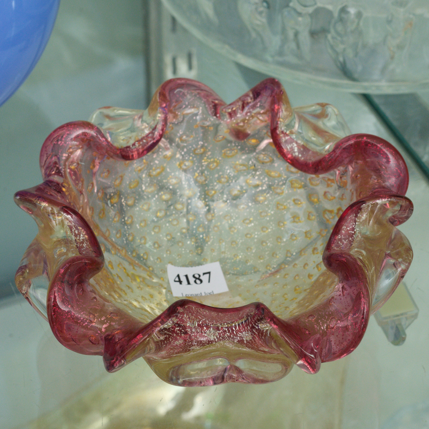 A MURANO GLASS BOWL WITH GOLD INCLUSIONS, LEONARD JOEL LOCAL DELIVERY SIZE: SMALL