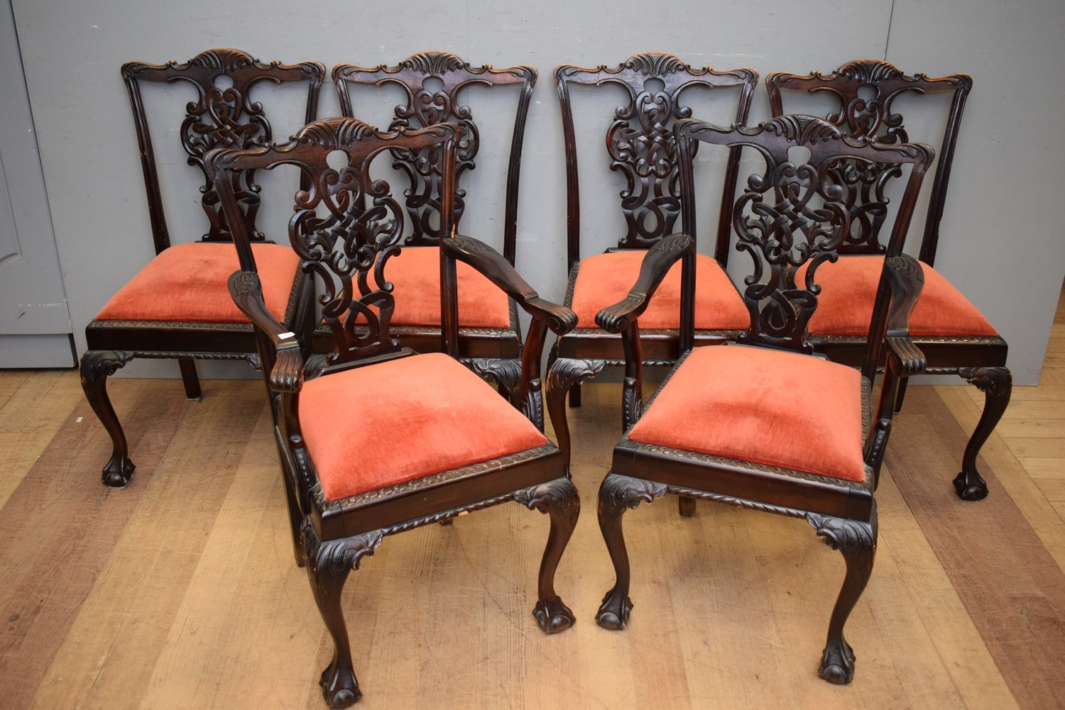 A SET OF SIX CHIPPENDALE STYLE DINING CHAIRS (AF) (99H x 61W x 58D CM) (LEONARD JOEL DELIVERY SIZE: LARGE)